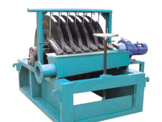 工作原理:盤式尾礦回收機(jī)是由主機(jī)、卸礦裝置、集礦槽、溜槽及機(jī)架五大部分組成。其工作原理是主機(jī)磁盤裝在溜槽中,礦漿從溜槽的一端流入,并通過磁盤與磁盤的縫隙,礦漿中磁性礦物被吸附在磁盤表面,剩下非磁性礦漿從溜槽另一端流出。主機(jī)磁盤轉(zhuǎn)動(dòng),吸附在磁盤表面的磁性礦物被帶出礦漿液面,當(dāng)進(jìn)入卸礦區(qū)時(shí),由插入磁盤縫隙之間的卸礦裝置將磁表面吸附的磁性礦物拋入集礦槽中,由集礦槽收集輸出。